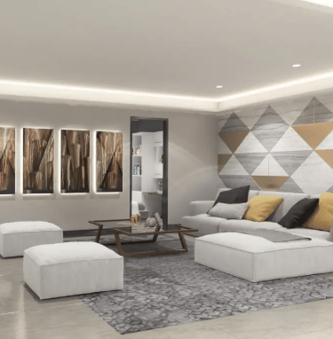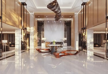 The expansive lobby is decorated with fixtures and furniture mimicking the soothing motion of waves. Spacious and charming. The lobby is a wonderful place to come greet visitors. spend time in, or simply pass by.